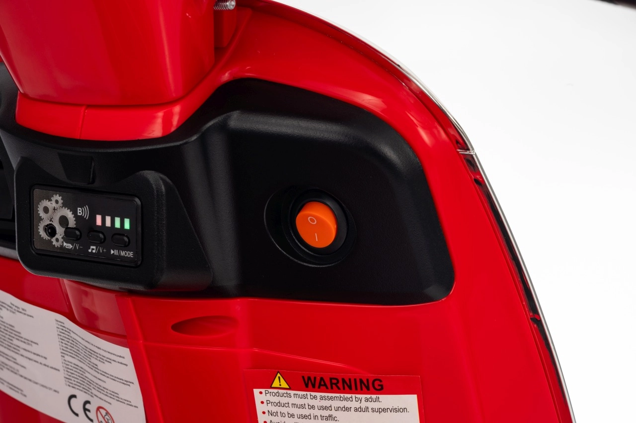 Der Kinderroller VESPA ROMA in Rot bietet ein authentisches Fahrerlebnis in kindgerechter, sicherer Ausführung. Dank sanftem Anfahren, Vorwärts- und Rückwärtsfahrt sowie hochwertigen EVA-Rädern ist die Fahrt komfortabel und leise. Praktische LED-Lichter erhöhen die Sichtbarkeit und verleihen dem Fahrzeug einen realistischen Look.