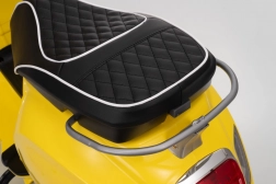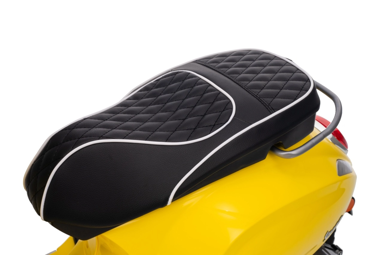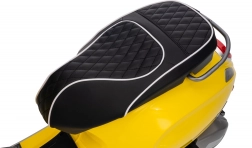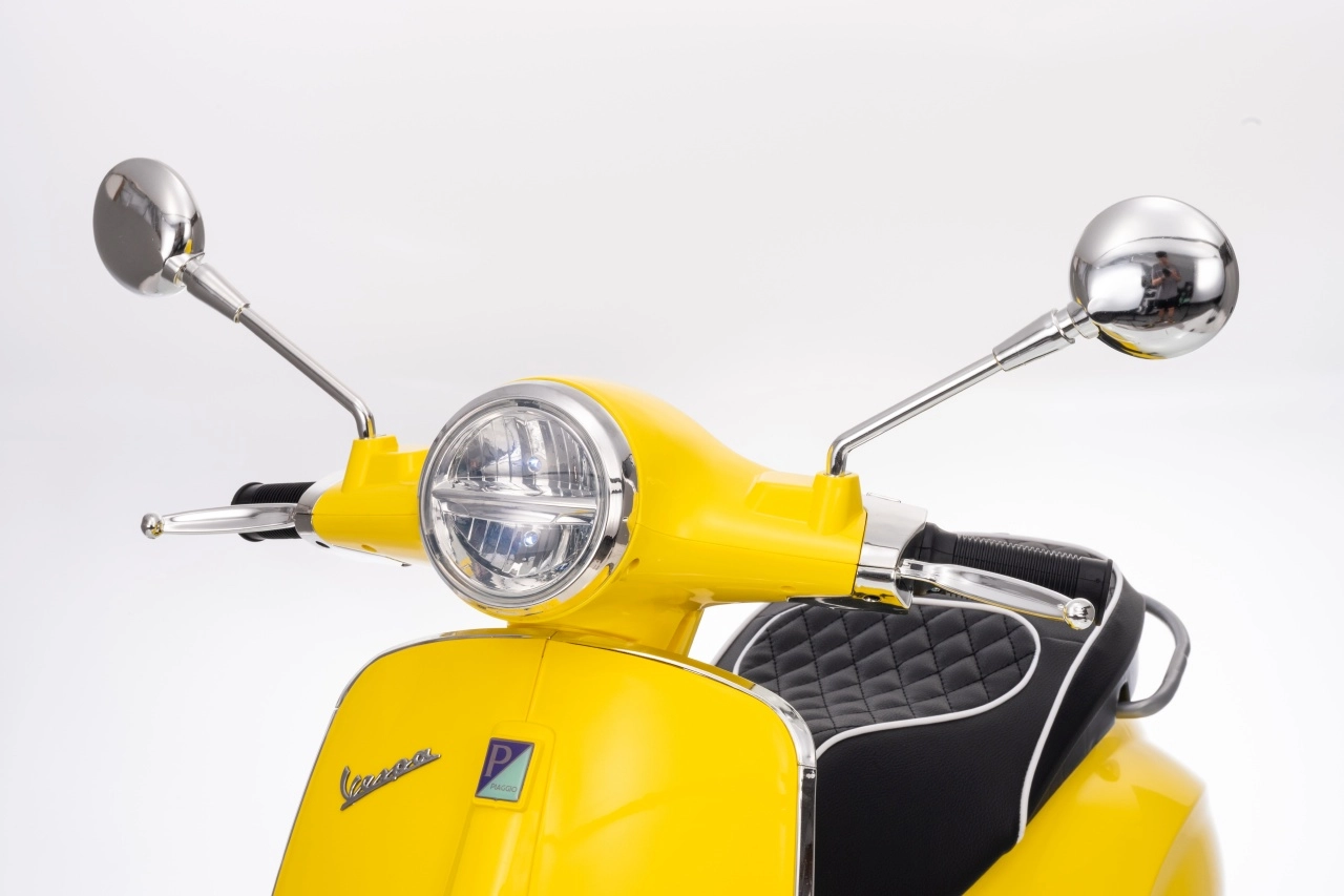 Das integrierte Audio-Panel mit MP3, Bluetooth und AUX spielt Lieblingslieder ab, am Lenker befinden sich Tasten für Sounds und Hupe. Helle LED-Lichter vorne und hinten erhöhen die Sichtbarkeit und verleihen den authentischen Look einer echten VESPA.