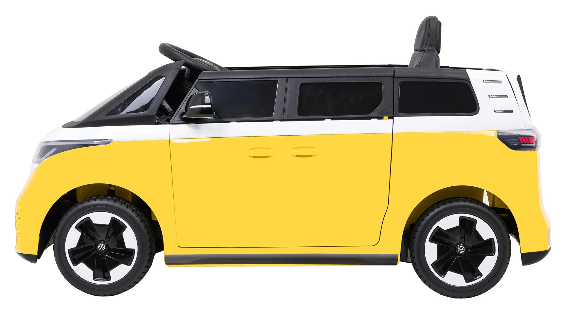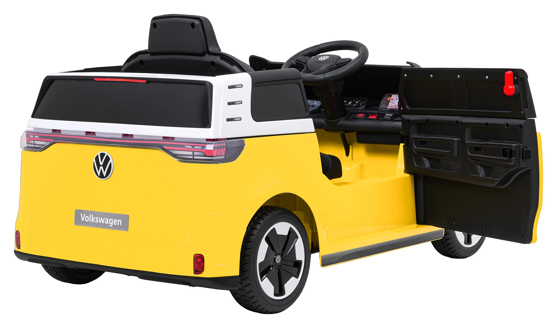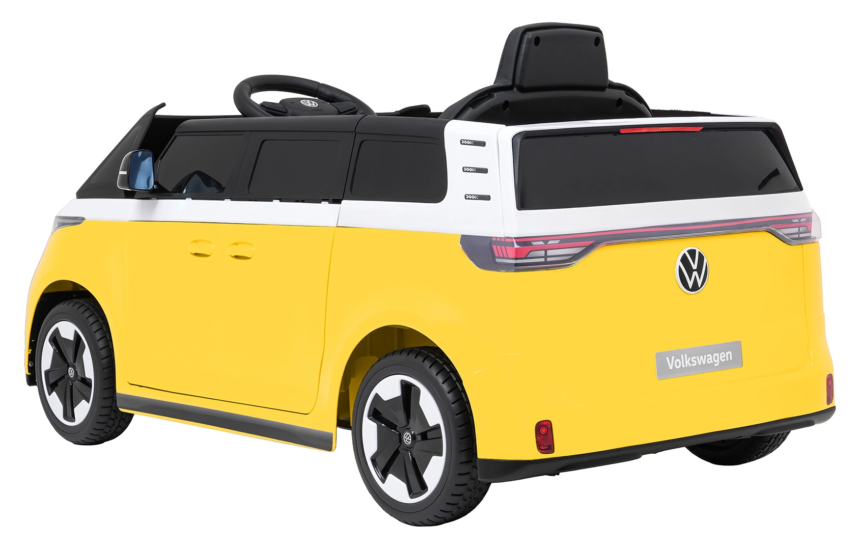 Der kleine Fahrer wird das ikonische Design des VOLKSWAGEN ID. BUZZ und die durchdachten Innenraumdetails mit Lenkung, Armaturenbrett und realistischen Bedienelementen lieben. Dank zwei 2×45-W-Motoren und der 12 V / 10 Ah Batterie ermöglicht das Auto sanftes Anfahren, zwei Geschwindigkeiten sowie Vorwärts- und Rückwärtsfahrt. EVA-Schaumreifen dämpfen Unebenheiten, während die Federung vorne und hinten zusätzlichen Komfort auf jedem Untergrund bietet.