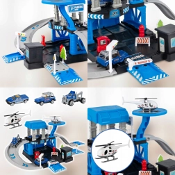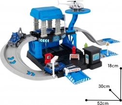 Enthalten sind 3 Metall-Polizeiautos (zufällige Modelle) und ein Polizeihubschrauber, sodass Kinder alleine oder mit Freundinnen und Freunden spielen können. Die stabile Konstruktion aus robustem Kunststoff und die leuchtenden Farben sorgen für sicheres und attraktives Spielen ab 3 Jahren.