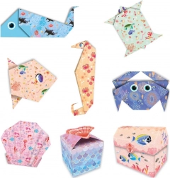 Das Set Mini-Origami Magischer Ozean bietet alles, was Sie für kreatives Papierbasteln brauchen: farbige Bögen mit Ozeanmotiven, einen Bogen mit Augenstickern und eine einfache Anleitung. Ideal für erste Schritte in der Welt des Origami und für kreative Nachmittage mit Kindern.