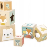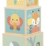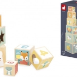 Glatt geschliffene Holzwürfel mit niedlichen Tieren und sanften Farben laden zum Spiel ein und halten dem täglichen Gebrauch stand.