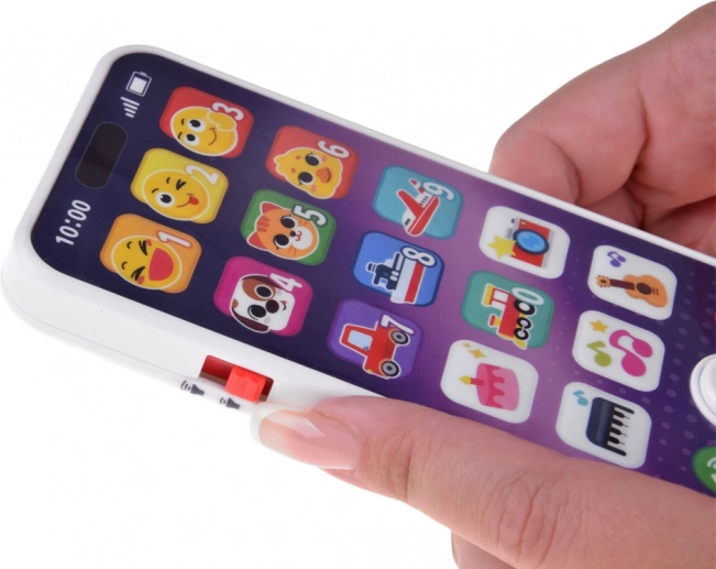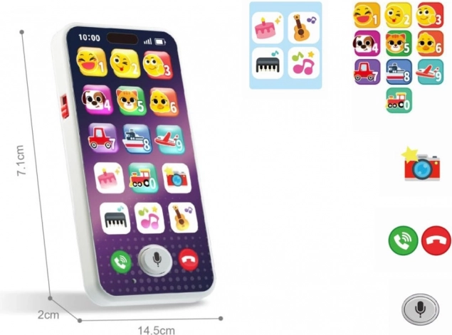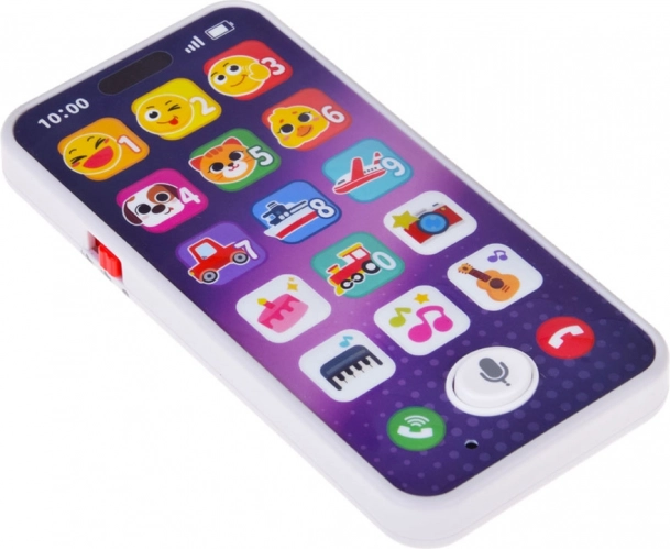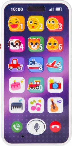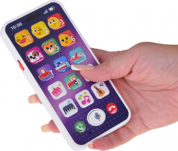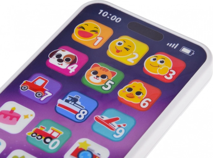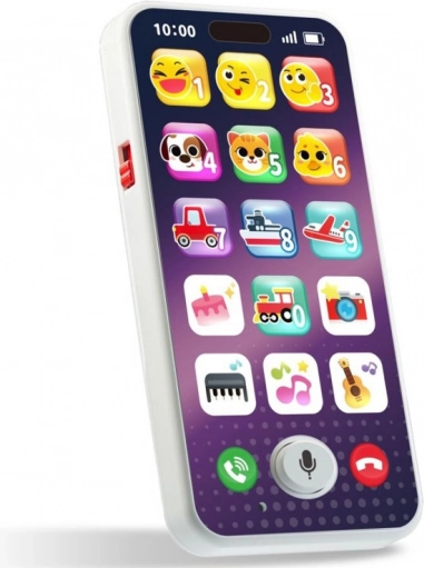 Farbiges, interaktives Telefon für die Kleinsten, das ein echtes Smartphone nachahmt und viel Spaß sowie Lernen bietet. Dank der großen Symbole lernt das Kind Zahlen, Tier- und Verkehrsgeräusche kennen und hört Melodien. Das Spielzeug ist leicht und flach gestaltet, liegt gut in kleinen Händen und verfügt über eine Lautstärkeregelung für entspanntes Spielen zu Hause und unterwegs.