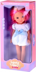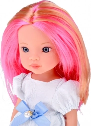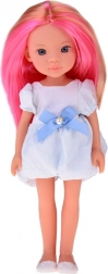 Die niedliche Puppe mit langen rosablonden Haaren und einem eleganten weißen Kleid mit blauer Schleife verzaubert jede kleine Modefreundin. Sie hat bewegliche Gelenke zum einfachen Posieren, eingepflanzte Haare zum Kämmen und abnehmbare Kleidung für lustiges Umziehen.