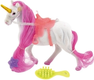 Das Einhorn verfügt über einen Sattel, der sich leicht aufsetzen und abnehmen lässt. Kinder genießen realistische Szenen und Abenteuer.