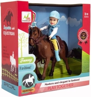 Alle kleinen Pferdeliebhaber werden sich über einen Jockey mit Pferd samt Zaumzeug und Sattel freuen. Der Jockey muss Reitkleidung und einen Helm tragen. Mähne und Schweif des Pferdes sind nicht kämmbar. Hergestellt aus hochwertigen und langlebigen Materialien. Verpackungsmaße: 23 x 23 x 9,5 cm. Geeignet für Kinder ab 3 Jahren.