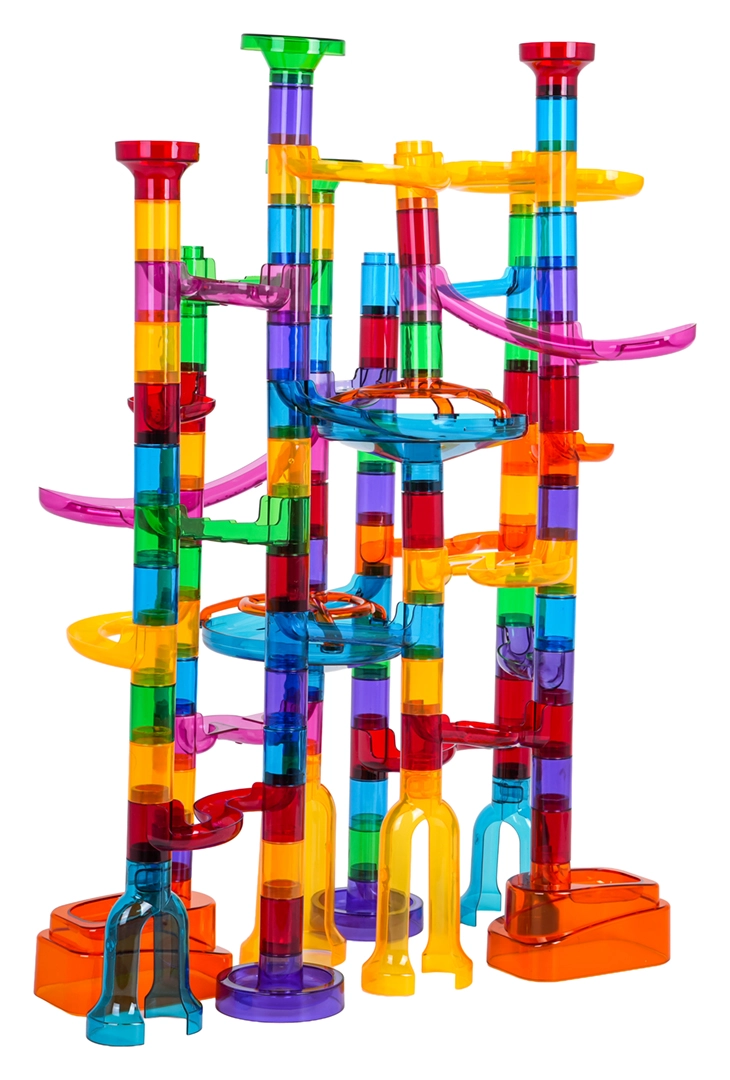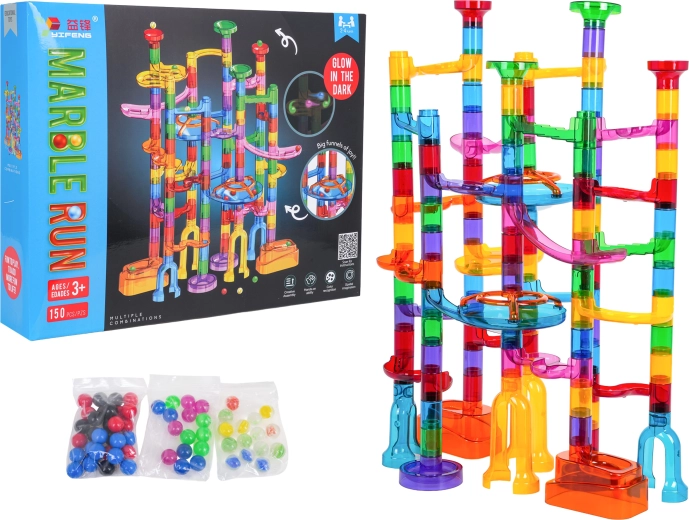 Baue eine stabile und farbenfrohe Konstruktion ganz nach deiner Fantasie und lass die Murmeln durch Spiralen, Kurven und Tunnel sausen. Leuchtende Murmeln verwandeln das Spielen im Dunkeln in ein magisches Erlebnis, und Kinder werden mit Freude neue Strecken und Rekorde ausprobieren.
