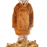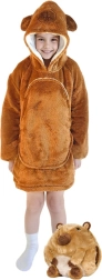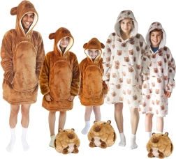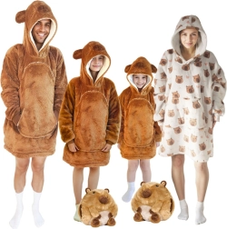 Diese Kinder-Hoodie-Decke mit Kapuze im Kapybara-Design fühlt sich an wie eine Umarmung, die von Kopf bis Fuß wärmt. Die innere Schicht aus Sherpa-Fleece ist flauschig und wärmend, während die Außenseite aus weichem Flanell zart auf der Haut ist. Dank des oversize Schnitts fühlen sich Kinder beim Fernsehen, Spielen und Ausruhen rundum wohl.