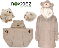 Der wärmende Kapuzen-Deckenhoodie Cozy Noxxiez im Bärendesign macht Entspannung zu purem Komfort. Innen wärmt flauschiger Sherpa-Fleece, außen begeistert extra weicher Flanell. Dank des oversize Schnitts zieht nichts, schränkt nicht ein und passt Kindern von 3 bis 6 Jahren wunderbar.