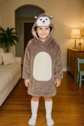 Die praktische große Kapuze mit Tiergesicht wärmt Kopf und Ohren, während die geräumige Fronttasche die Hände warm hält und Kleinigkeiten aufnimmt. Die knielange Länge und der lockere Oversize-Schnitt sorgen dafür, dass Kindern überall angenehm warm ist.