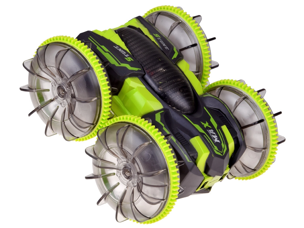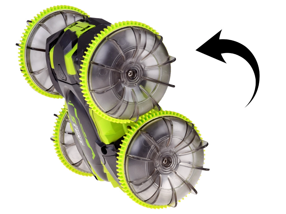 Erleben Sie Adrenalin mit dem amphibischen Stunt-RC-Auto, das mit Gras, Teppich, Fliesen und sogar der Wasseroberfläche zurechtkommt. Große transparente Räder mit markantem Profil und LED-Beleuchtung sorgen für hervorragende Haftung und einen effektvollen Look bei Tag und Nacht. Dank der 360°-Drehung fährt es sogar nach einem Überschlag weiter.