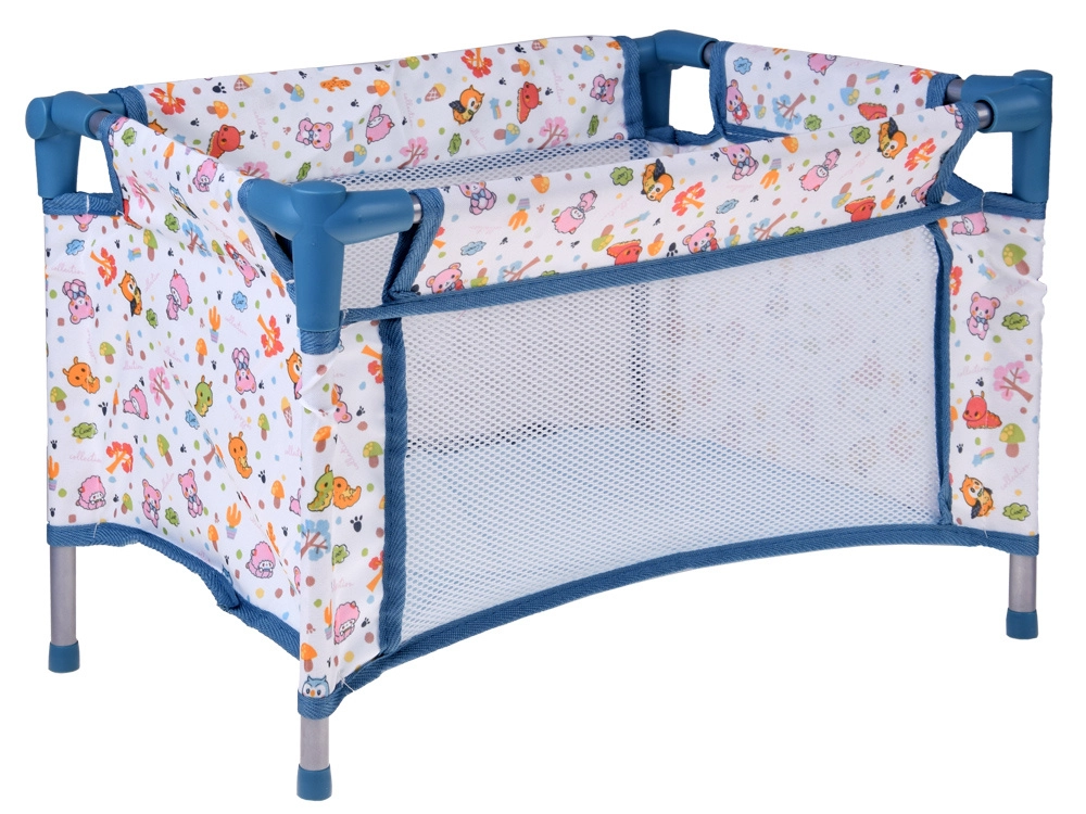Leichter und robuster Rahmen, Netzseiten für Sicht und Luftzirkulation. Das Bett lässt sich leicht zusammenklappen und in der praktischen Hülle transportieren.