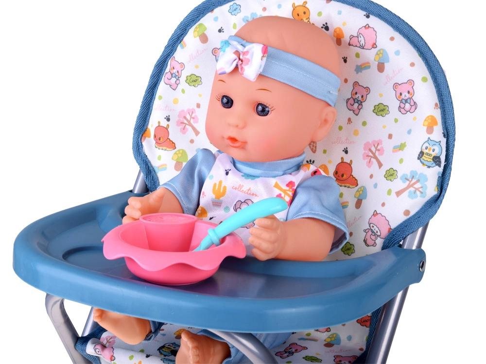 Machen Sie Kindern eine Freude mit einem realistischen Pflegeset fürs Baby, das alles für tägliche Rituale bietet – vom Füttern über den Spaziergang bis zum Schlafengehen. Die Puppe hat bewegliche Gliedmaßen, weiche Kleidung und sitzt im Hochstuhl wie auch im Kinderwagen. Kinderwagen und Bett verfügen über einen leichten, klappbaren Rahmen und sind daher leicht zu tragen und schnell verstaut.