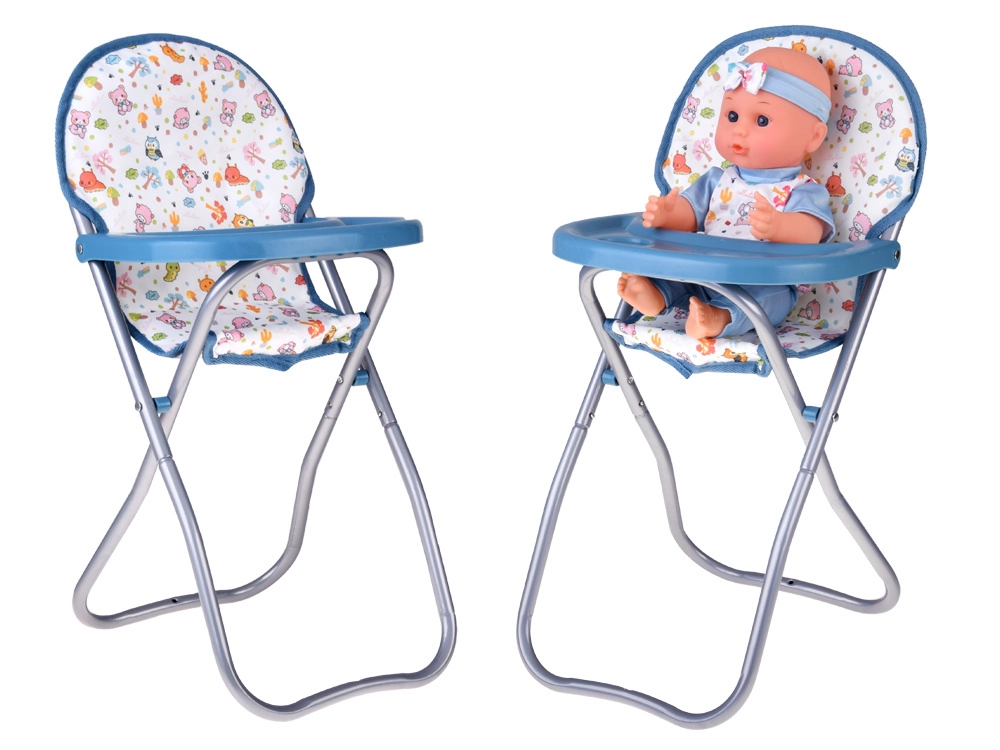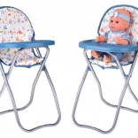 Stabiler, klappbarer Hochstuhl mit Tablett und Platz für Schüssel und Besteck. Unterstützt realistisches Füttern und gemeinsames Essen mit der Puppe.