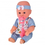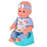 Komplettes Spielset für kleine Fürsorger: eine niedliche Babypuppe mit umfangreicher Ausstattung zum Füttern, Wickeln, Schlafen und Spazierengehen. Inklusive klappbarem Kinderwagen, Hochstuhl, Reisebett mit Tasche, Töpfchen, Flasche, Schüssel mit Löffel und Gabel, Schnuller an Kette, Spielzeug und Schühchen. Dieses Set fördert Empathie, Kreativität und Rollenspiel-Fähigkeiten und bietet Stunden voller Spaß zu Hause und unterwegs.