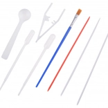 Wanne, Papiere, Farben, Pipetten, Kamm, Pinsel und Spachtel – kurzum alles, was Sie für Ihr erstes marmoriertes Bild benötigen.