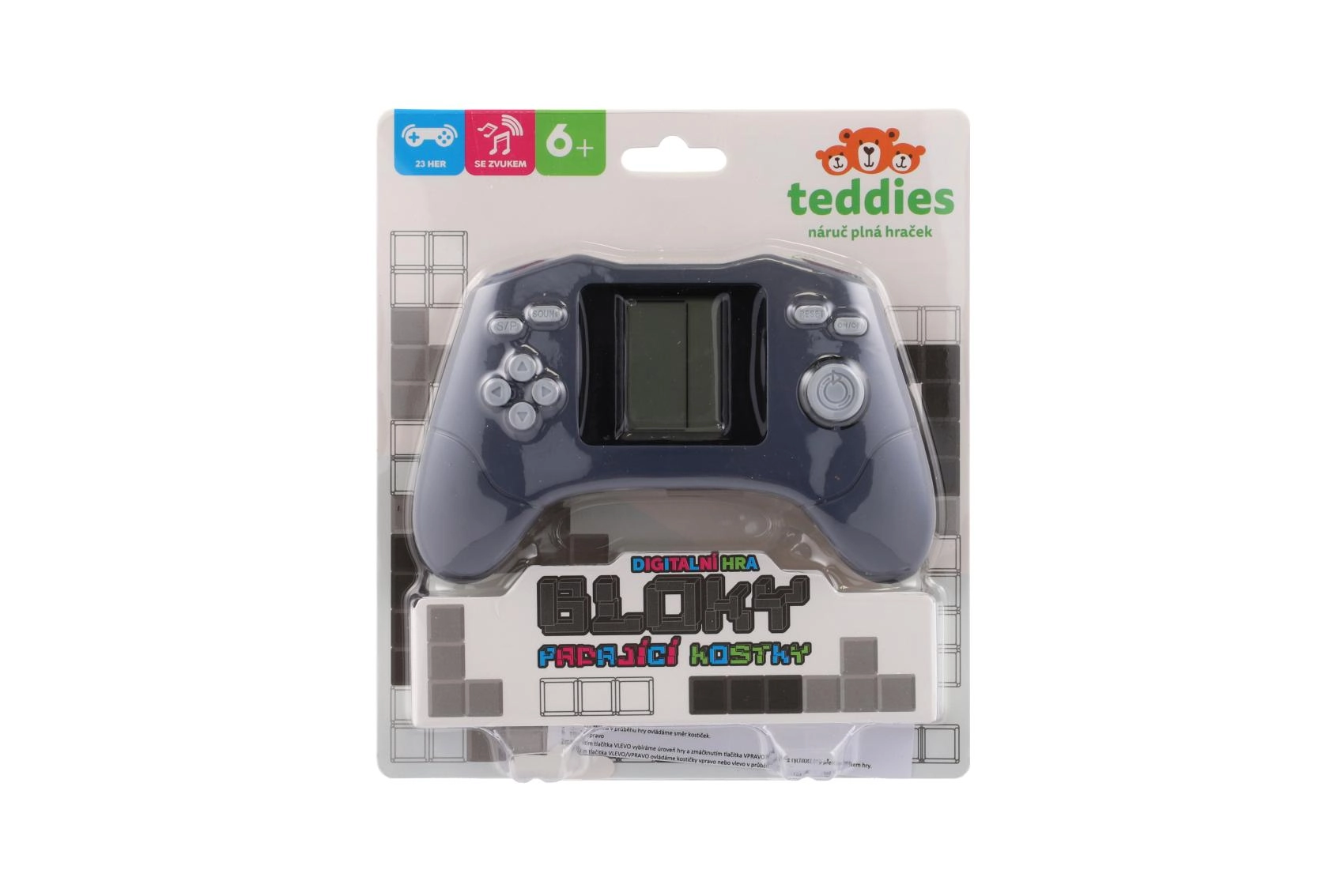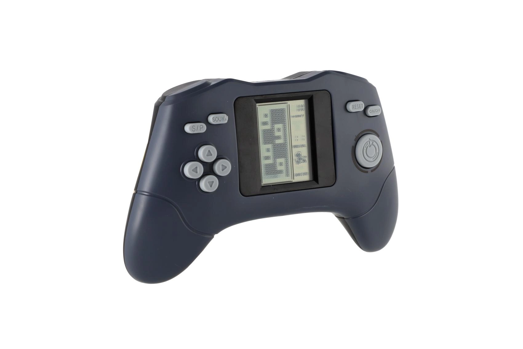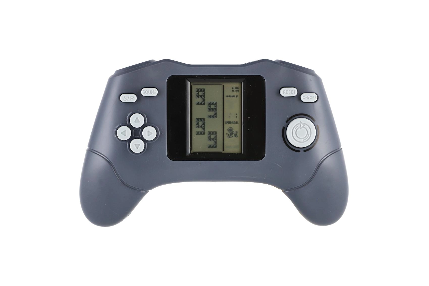 Richtungspfeile, S/P, Reset, Sound und On/Off – alles in Fingernähe. Das Gehäuse liegt Kindern und Erwachsenen gut in der Hand und sorgt für komfortables Spielen.