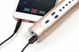 Dieses tragbare Karaoke-Mikrofon ist ideal für Zuhause, Feiern und Partys. Dank Bluetooth 4.2 koppeln Sie bequem Ihr Smartphone, Tablet oder Ihren Computer; alternativ nutzen Sie den AUX-Anschluss oder die Wiedergabe von TF-Karte. Die integrierten Lautsprecher 2×3 W sorgen für klaren und ausreichend lauten Sound.