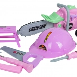 Rosa Werkzeugset für Kinder mit Motorsäge und Zubehör