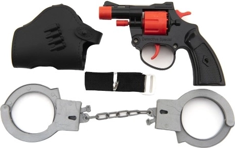Diese Kinder-Kapselpistole sorgt für viel sicheren Spielspaß und fördert die Fantasie bei Polizei-Rollenspielen. Zum Set gehören ein praktisches Gürtelholster und Kunststoff-Handschellen, die das Spielerlebnis noch authentischer machen. Dank der kompakten Länge von 13 cm liegt die Pistole auch kleineren Kindern gut in der Hand.