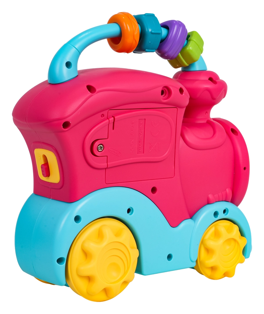 Das Spielzeug ist für sicheres Spielen ab 12 Monaten konzipiert, verfügt über eine zweistufige Lautstärkeregelung und unterstützt dank der leuchtenden Farben die visuelle Wahrnehmung. Der ergonomische Griff erleichtert das Tragen und Schieben über den Boden. Der Zug wird mit 3× AA 1,5 V betrieben (nicht im Lieferumfang enthalten).