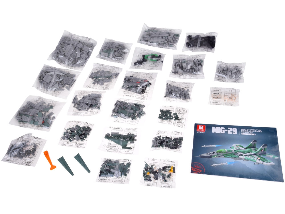 Die Packung enthält viele Beutel mit Bauteilen sowie eine übersichtliche MiG‑29‑Bauanleitung. Der Bau verläuft von Anfang bis Ende flüssig und nachvollziehbar.