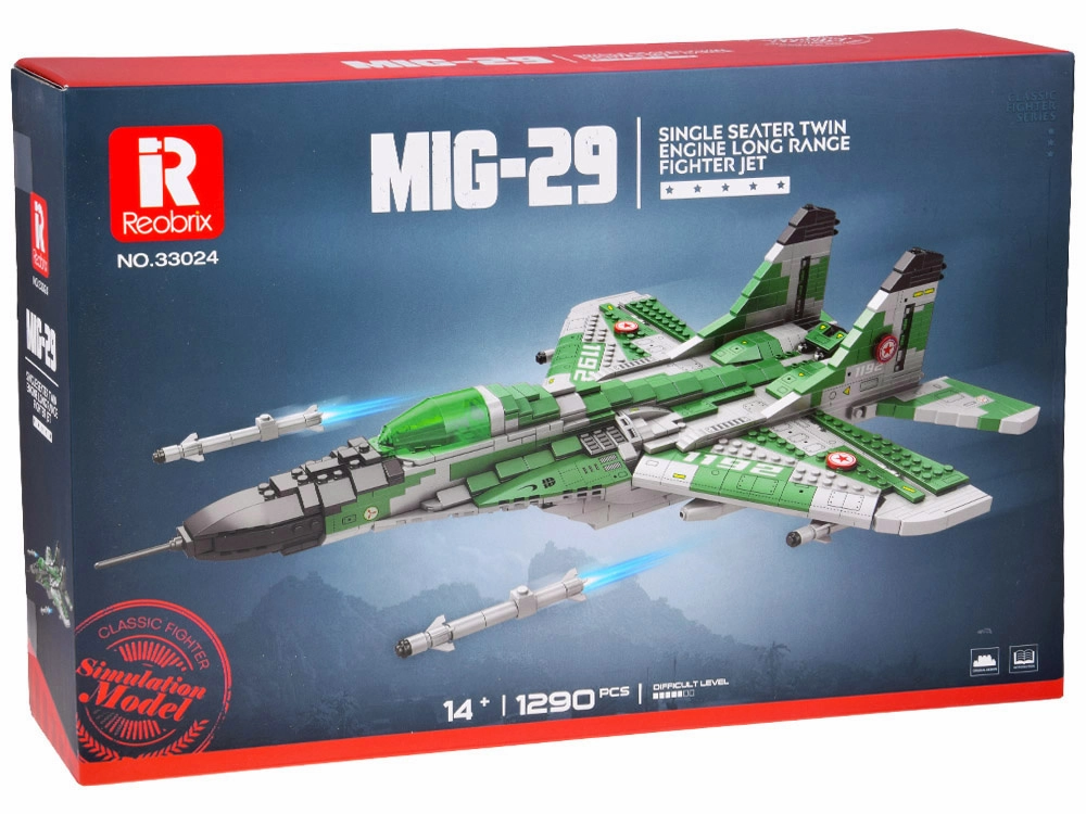 Bauen Sie die ikonische MiG‑29 aus 1290 Teilen und entdecken Sie die Welt der Militärluftfahrt. Großes Modell mit den Abmessungen 48 × 34 × 15 cm, authentischer Camouflage, ausfahrbarem Fahrwerk und der Möglichkeit zur Montage verschiedener Raketen – bietet großartigen Bauspaß und eine eindrucksvolle Präsentation.