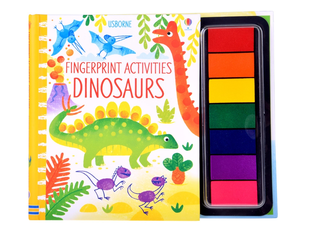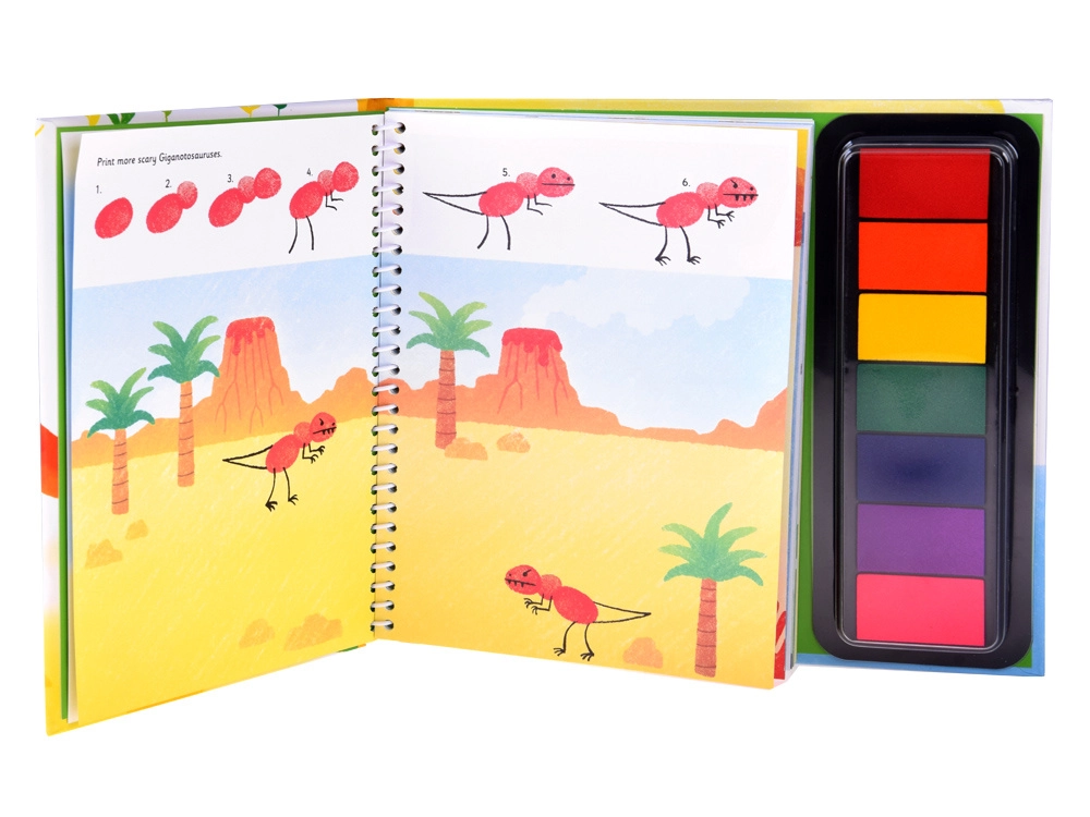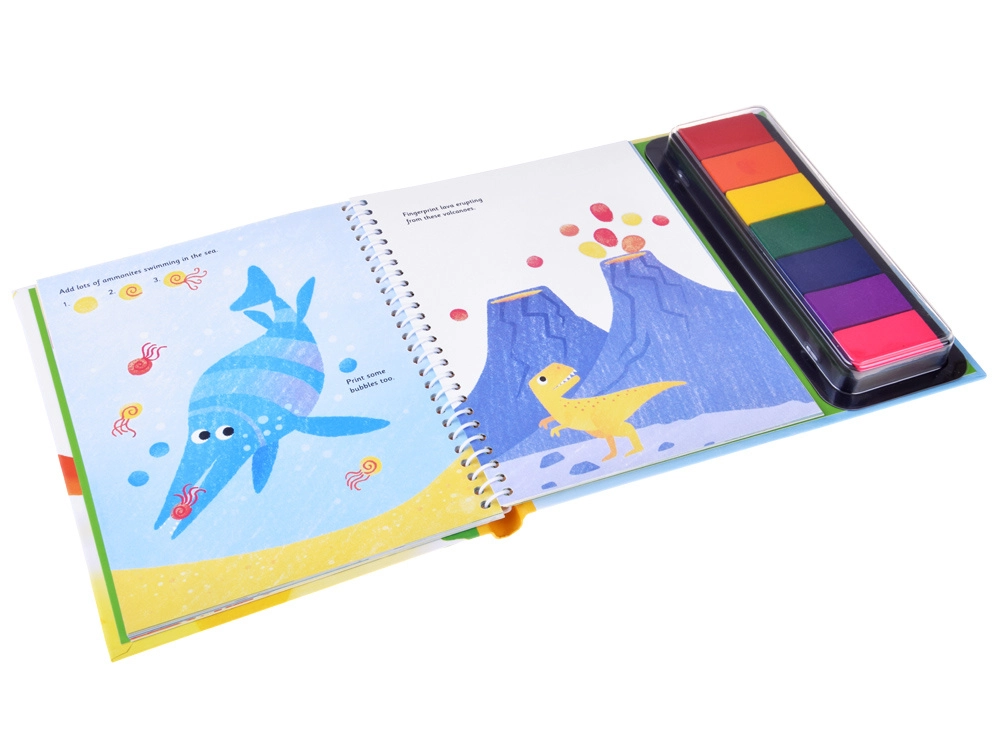 Das Fingerabdruck-Malbuch Dinosaurier ist die ideale Wahl für Kinder ab 3 Jahren. Auf jeder Seite wartet ein anderes prähistorisches Wesen und eine einfache Aufgabe, die das Kind mit Fingerabdrücken erfüllt. Die integrierte Palette mit 7 Farben ermöglicht kreatives Gestalten ohne weitere Hilfsmittel – einfach aufklappen und loslegen.