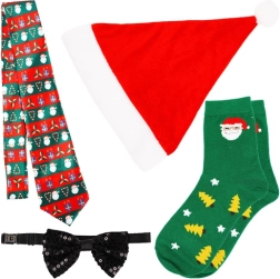 Domino, Edelstahl-Schnapsgläser und stilvolle Accessoires wie Krawatte, Socken, Mütze und funkelnde Fliege – alles abgestimmt auf die Weihnachtsatmosphäre.