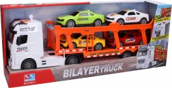 Großer Schwungrad-Autotransporter 56 cm mit 4 Autos, Licht- und Soundeffekten