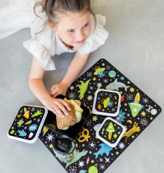 Ideal für Kinderzimmer, Küche und unterwegs. Das minimalistische Design mit Sternen und Planeten schützt zugleich den Tisch vor Schmutz und kleinen Kratzern.