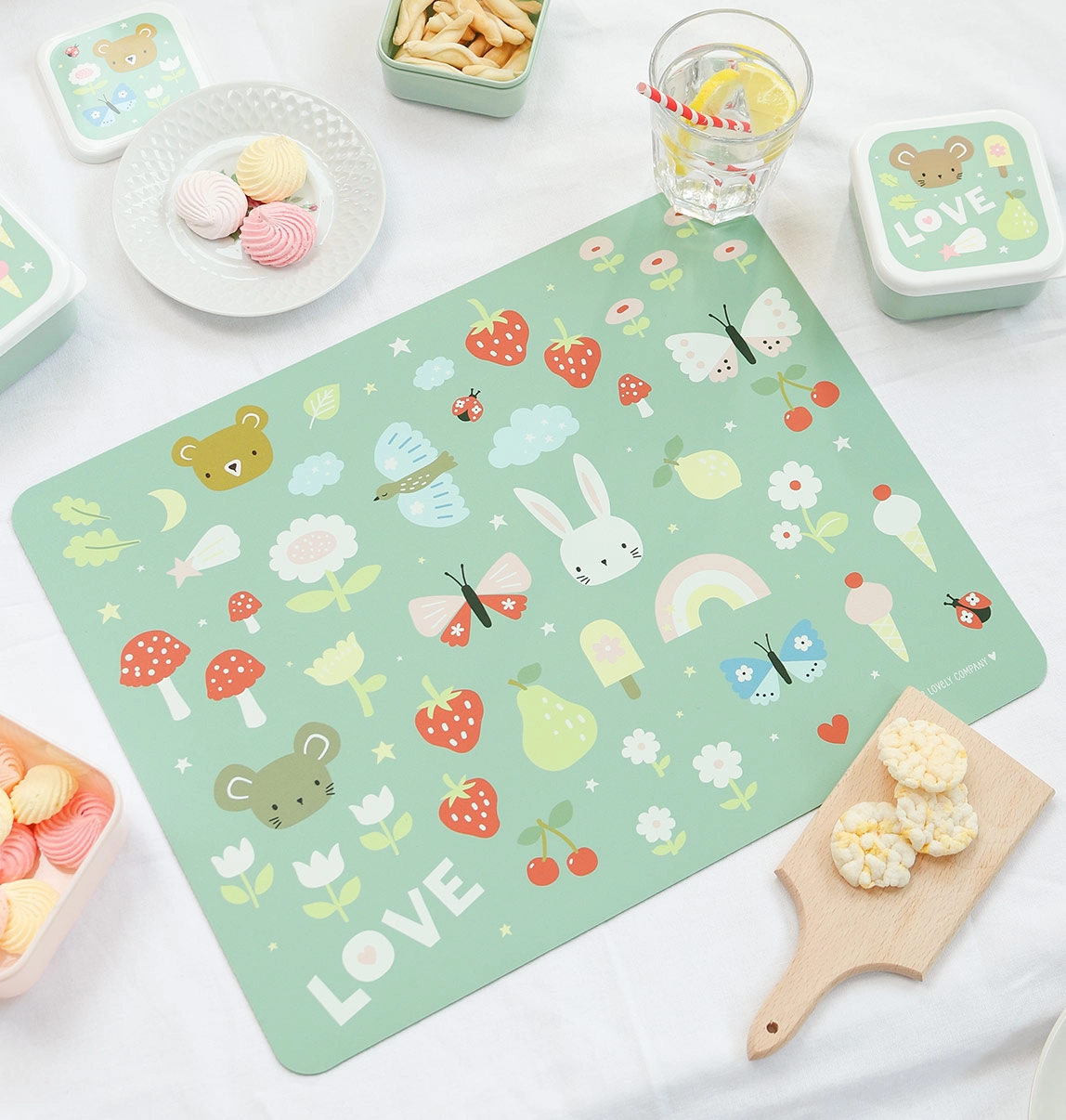 Das praktische Kinderplatzset in sattem Grün mit verspieltem Motiv passt auf jeden Tisch. Dank robustem Vinyl lässt es sich leicht reinigen, sieht dauerhaft großartig aus und schützt die Tischoberfläche bei täglicher Nutzung.