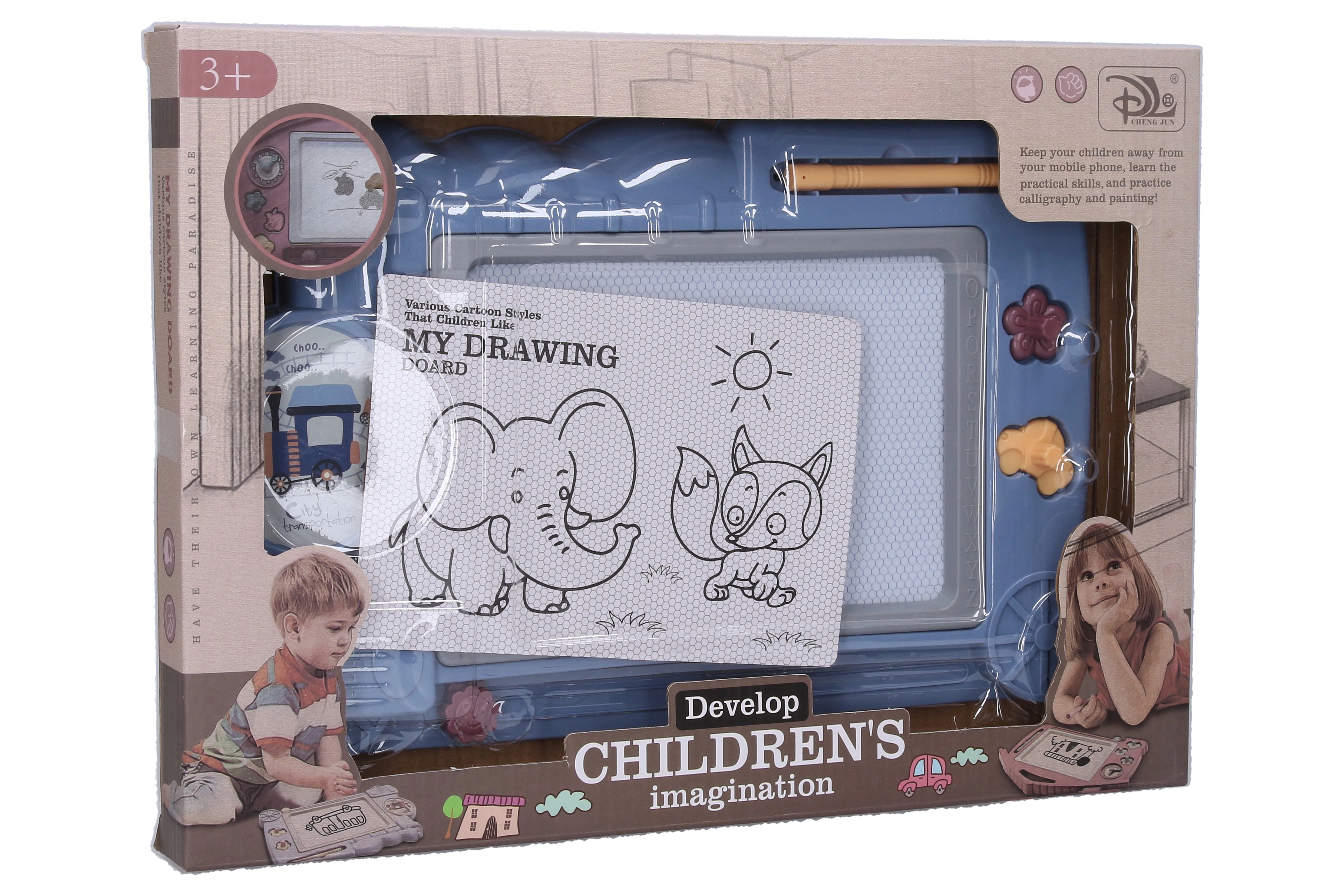 Entdecken Sie endlosen Spaß mit der magischen Zeichentafel in der Größe 33 cm. Kinder können mit dem Magnetstift zeichnen, mit Stempeln Muster gestalten und mithilfe des Schiebers im Handumdrehen alles löschen. Ideal zur Förderung der Feinmotorik, Fantasie und Geduld – ganz ohne Papier und ohne Unordnung.