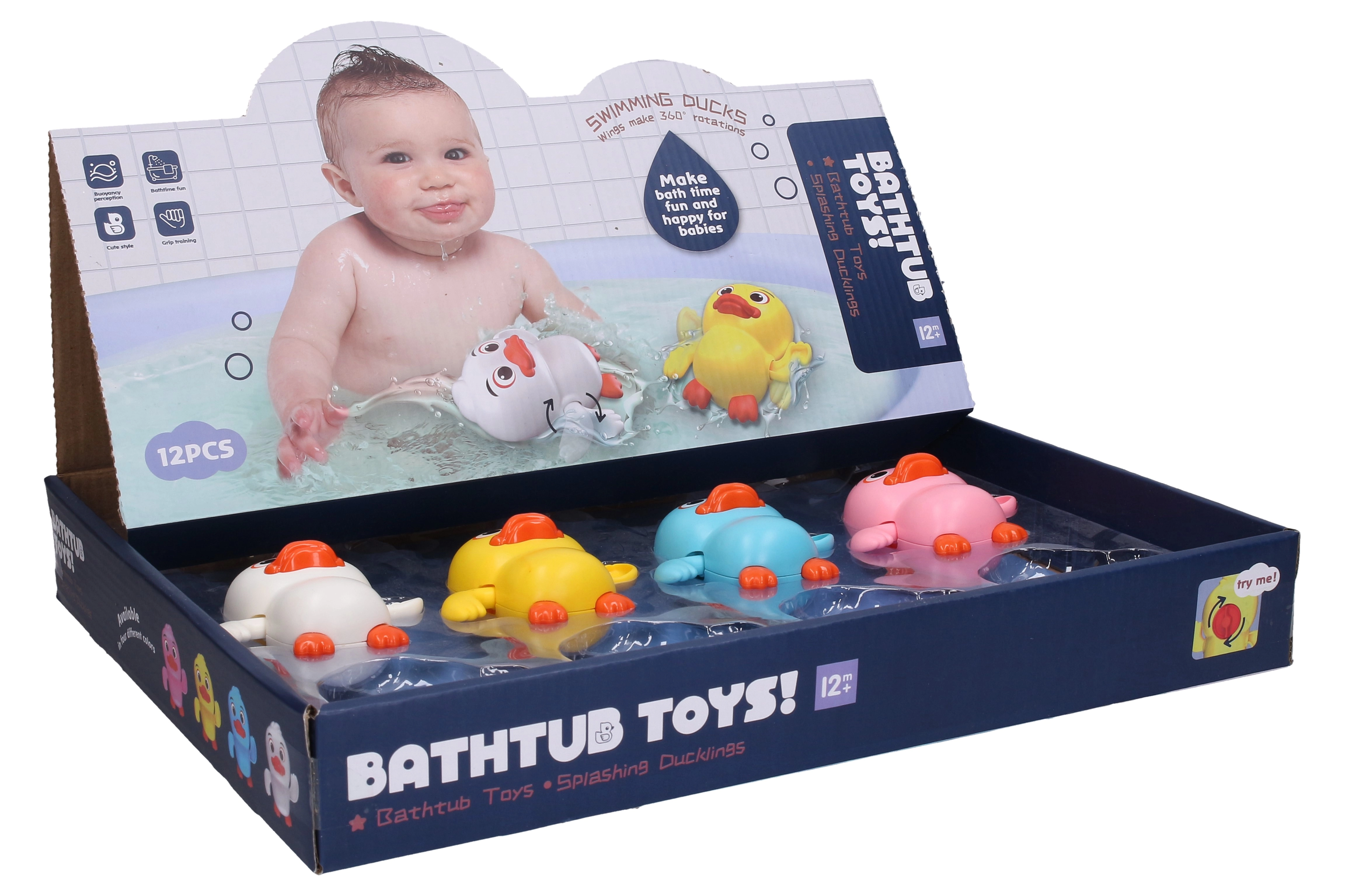 Die niedliche aufziehbare Badeente mit 9 cm Größe sorgt bei jedem Baden für Spaß. Dank des einfachen Aufziehmechanismus bewegt sich die Ente selbstständig auf der Wasseroberfläche und fördert spielerische Interaktion. Erhältlich in mehreren Farbvarianten, verpackt zu 12 Stück im Display-Box – ideal auch als Geschenk oder als Ergänzung für die Badespielecke der Kinder.