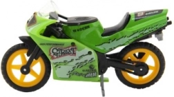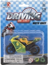 Das Modellrennrad ist 8 cm groß und aus einer Kombination aus Metall und Kunststoff gefertigt. Ideal für Kinder ab 3 Jahren, fördert kreatives und fantasievolles Spielen. Das Motorrad ist auf einer Karte verpackt und in verschiedenen Farbvarianten erhältlich.