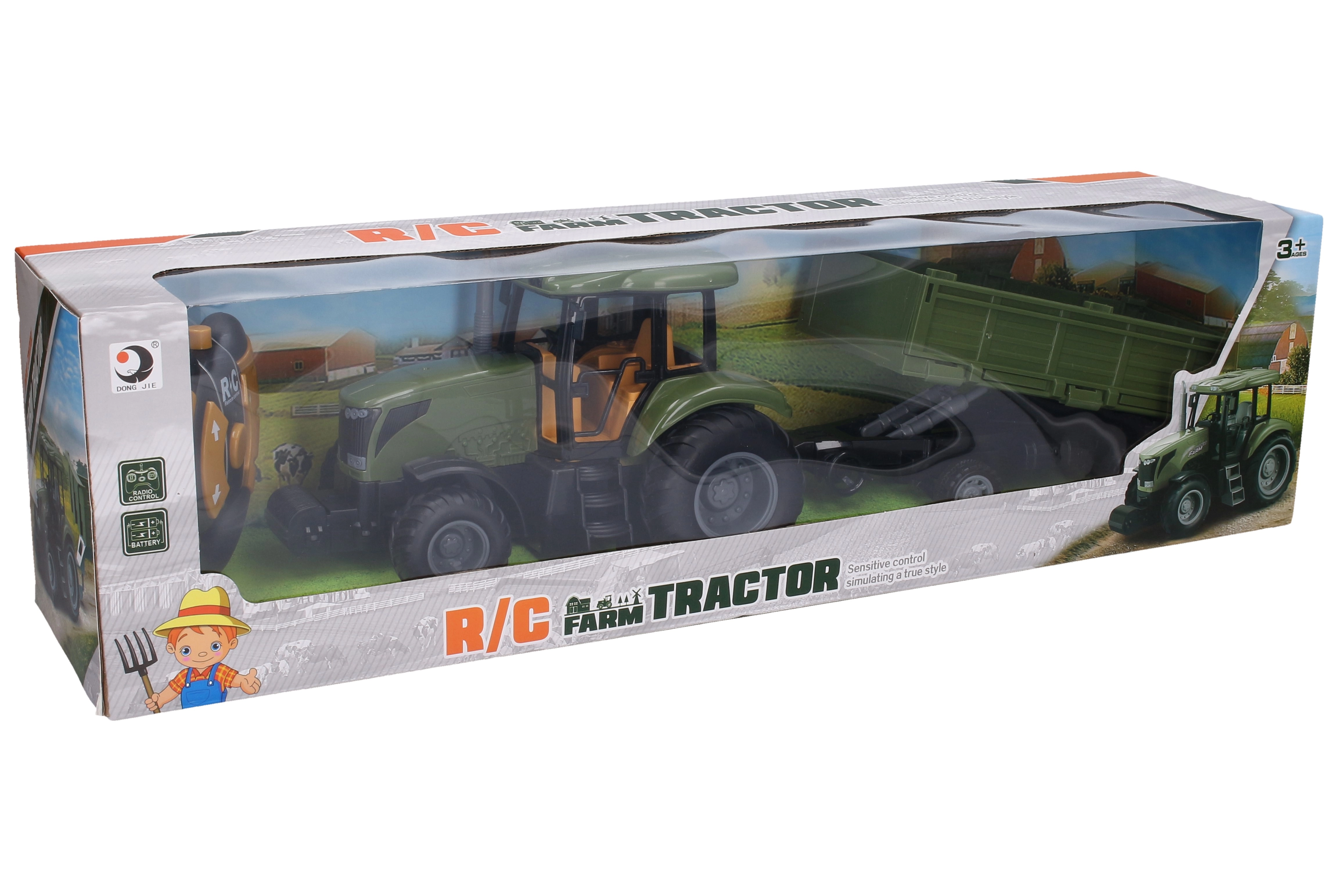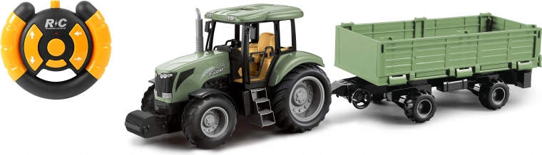 Dieser detailreich gestaltete RC-Traktor mit Anhänger sorgt bei Kindern und Erwachsenen für stundenlangen Spielspaß. Dank der zuverlässigen 2,4-GHz-Steuerung lässt er sich auch in Umgebungen mit mehreren Modellen leicht bedienen, und seine Abmessungen (Traktor 24 cm, Gesamtlänge 40 cm) gewährleisten hervorragende Stabilität. Der ON/OFF-Schalter ist bequem an der Unterseite des Traktors angebracht, und das Aufladen erfolgt über das mitgelieferte USB-Kabel.