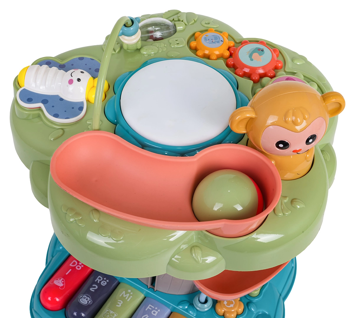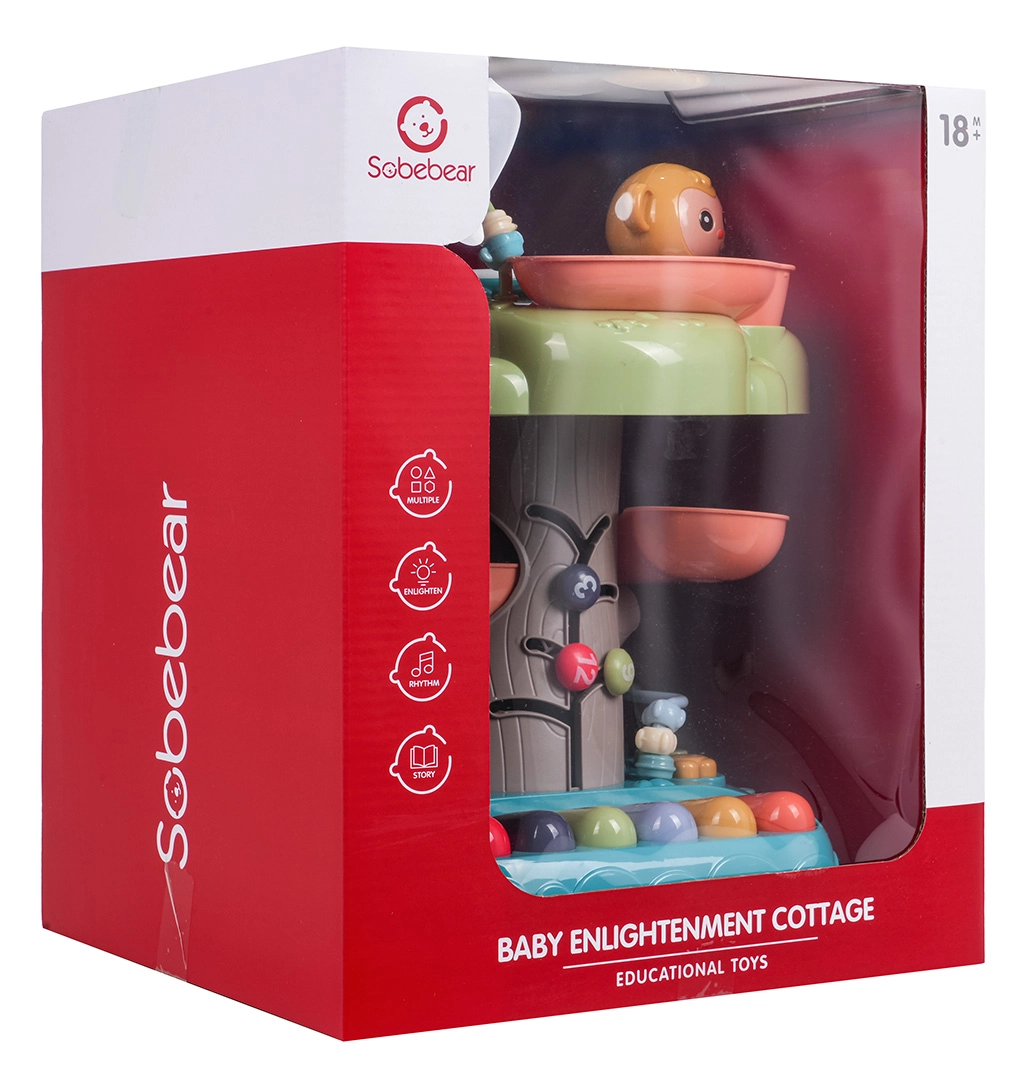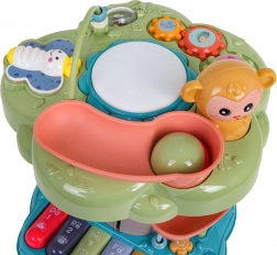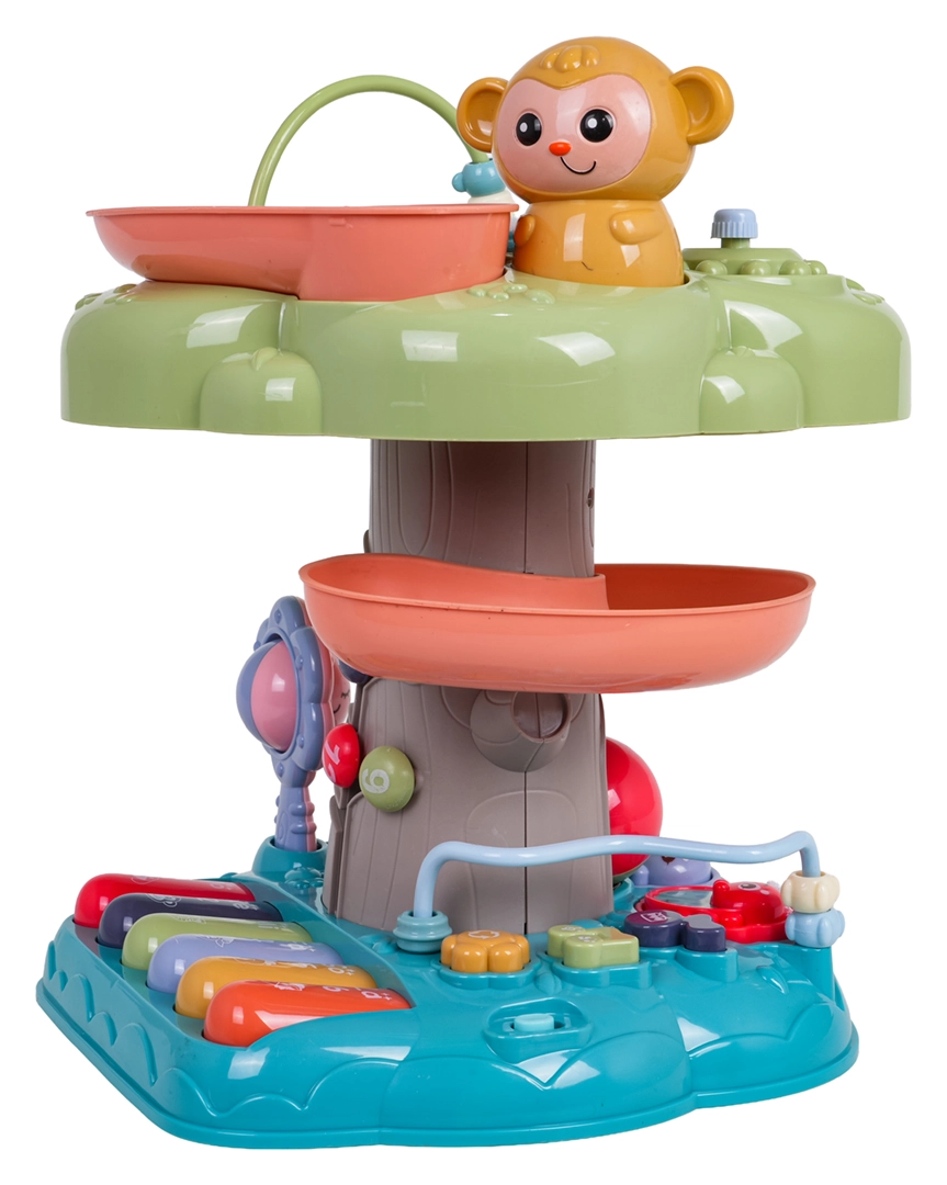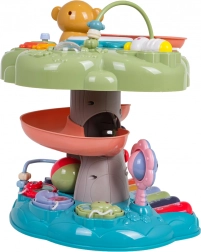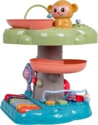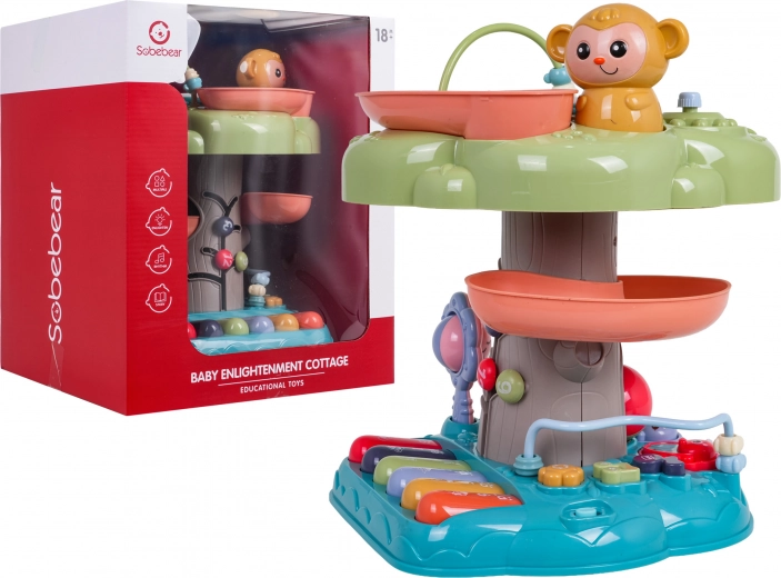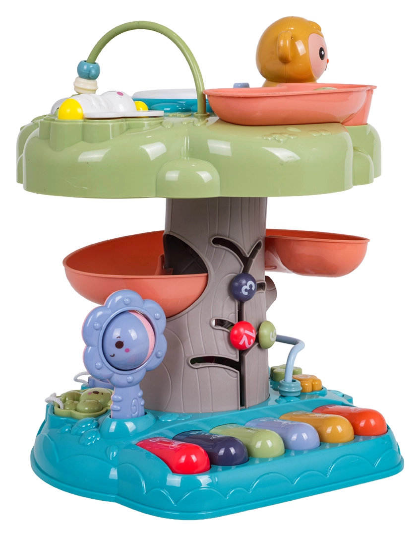 Der interaktive Baum ist ein ideales Lernspielzeug für die Kleinsten. Kinder werden vom beleuchteten Musiktrommel an der Spitze, dem Klavier mit vier Modi (Zahlen, Melodien, Tiere und ihre Geräusche, Töne) sowie der spiralförmigen Bahn für Kugeln begeistert, auf der die Bälle fröhlich nach unten rollen. Bunte Elemente, Lichter und Melodien unterstützen die sensorische Entwicklung und das Lernen von Ursachen und Folgen.