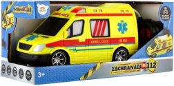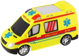 Der auffällige gelbe Rettungswagen mit AMBULANCE‑Aufdruck und funktionierendem Licht fördert das kreative Spiel kleiner Rettungskräfte.