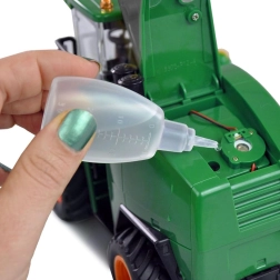 Eine praktische Flasche ist enthalten. Einfach eine kleine Menge Wasser in die Öffnung füllen und der Mähdrescher erzeugt während der Fahrt einen sicheren Raucheffekt.