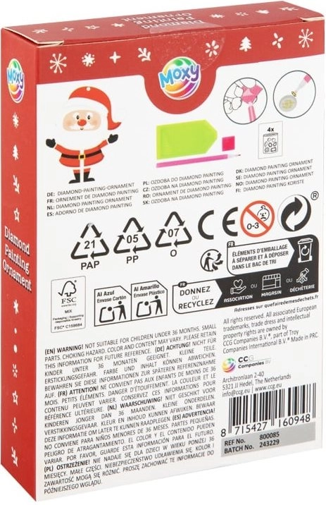 Entdecken Sie die Magie der Diamantmalerei und fertigen Sie ein originelles Weihnachtsornament, das am Baum, Adventskranz oder im Interieur erstrahlt. Das Set ist ideal für Kinder und Erwachsene – folgen Sie einfach dem Zahlenmuster und platzieren Sie mit dem Stift die Steinchen auf dem selbstklebenden Untergrund.