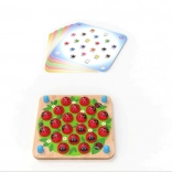 2-teilige hölzerne Spielplatte, 6 thematische Spielkarten, 20 hölzerne Marienkäfer, insgesamt 28 Teile