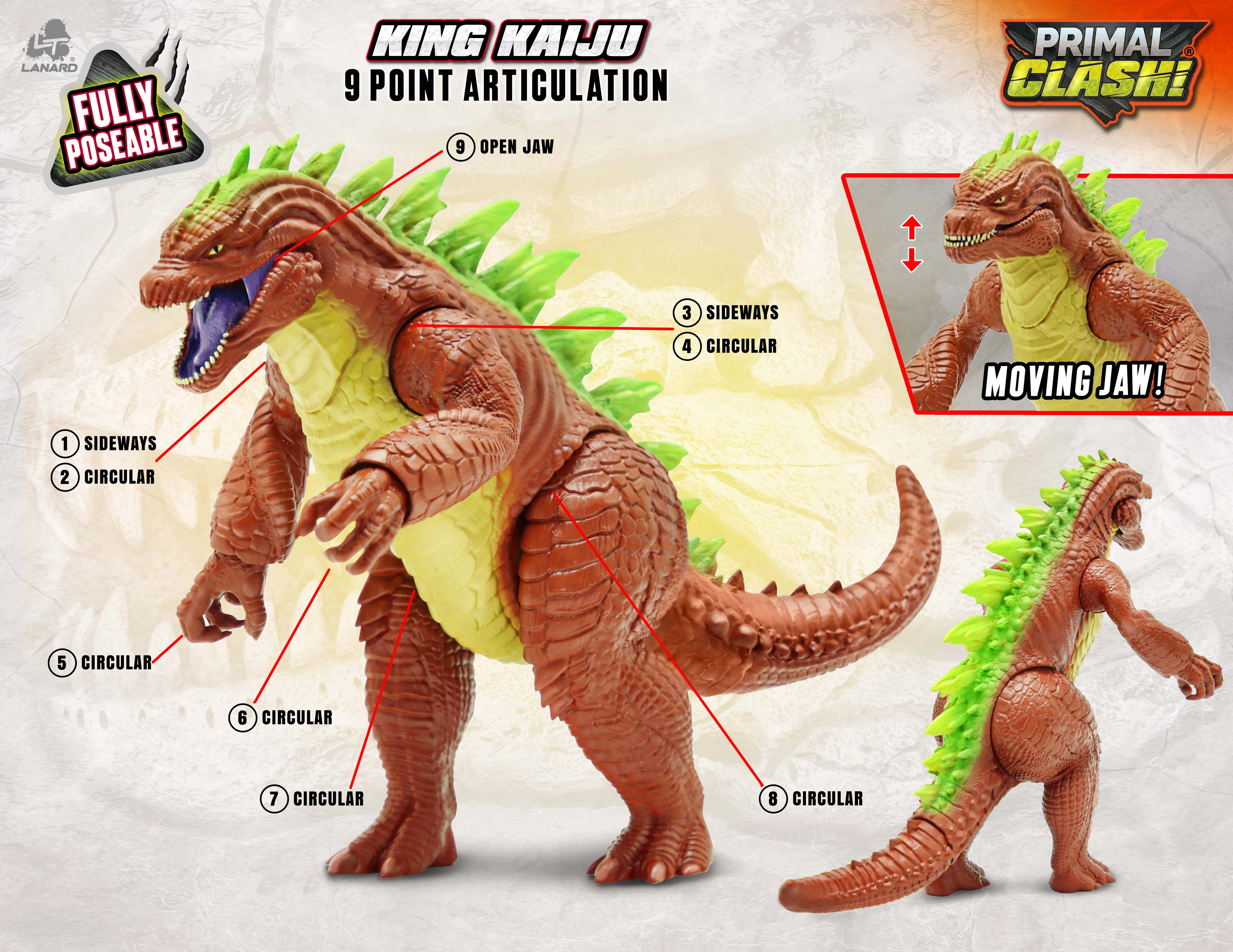 Tauchen Sie mit der King-Kaiju-Figur aus der Primal-Clash-Serie in die Welt der Riesenkreaturen ein. Diese detailreich gestaltete Figur/Decoration mit einer Höhe von 43 cm überzeugt durch ihr markantes Design, die stabile Verarbeitung und die einfache Montage – der Schwanz wird einfach angeclipst.