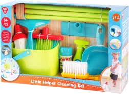 Das PLAYGO Reinigungsset für Kinder bietet eine spielerische Möglichkeit, Kindern das Helfen im Haushalt beizubringen. Es enthält alles Nötige für das Putz-Rollenspiel – Besen, Eimer, Kehrschaufel mit Handfeger, Sprühflasche, Mopp, Abzieher und weiteres Zubehör.