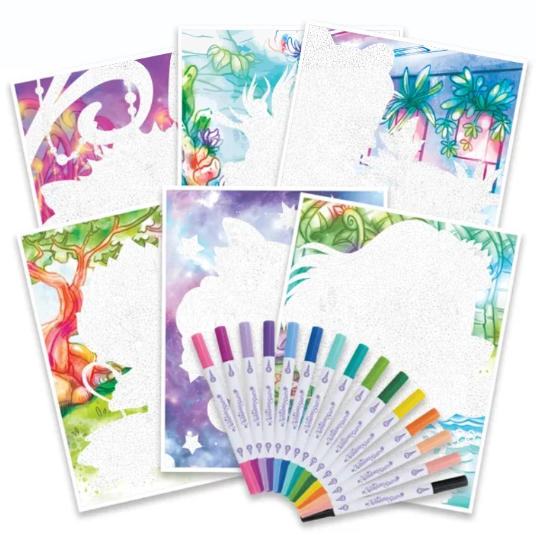Alles ist in einem stabilen, magnetischen Etui verstaut, das Seiten und Stifte schützt. Die doppelseitigen Filzstifte bieten ein breites Spektrum an Farbtönen für präzises Ausmalen von Details und Flächen. Das Set ist außerdem ein hervorragendes Geschenk für alle Fans von Zeichnen und fantasievollen Motiven.
