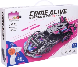 Im Paket findest du 323 Bausteile, eine übersichtliche bebilderte Anleitung ohne Text sowie Aufkleber zur Gestaltung. Das Auto wird von einem Li‑Ion‑Akkupack 3,7 V / 350 mAh (inklusive) versorgt, das Laden erfolgt über das USB‑Kabel. Auf der Unterseite des Autos und an der Seite des Controllers befindet sich ein praktischer ON/OFF‑Schalter.