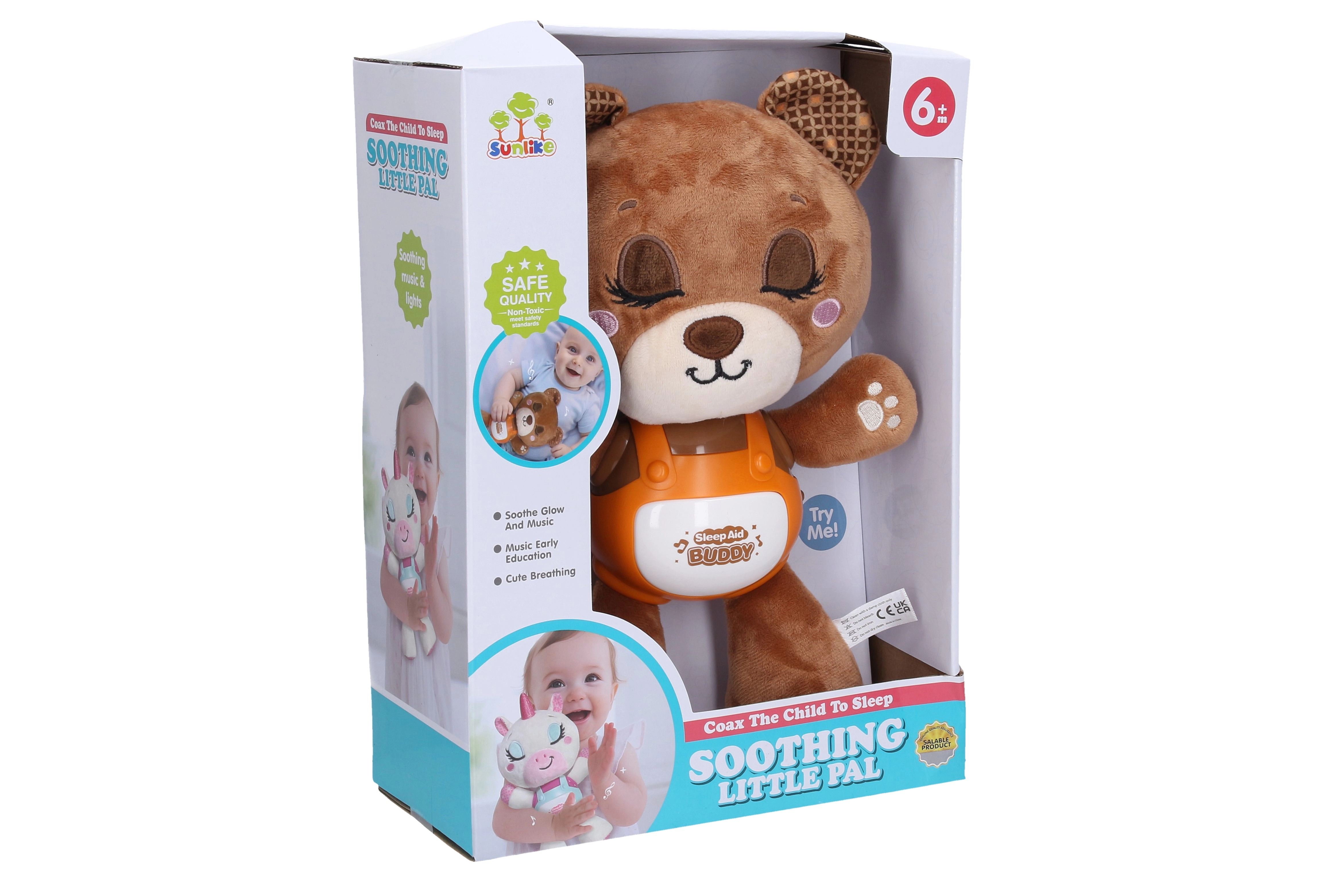 Dieses Plüsch-Einschlafbärchen ist der ideale Begleiter für Abendrituale und den Mittagsschlaf. Dank Soundeffekten und Licht entsteht eine angenehme Atmosphäre, die dem Kind hilft, die Sinne zu beruhigen und schneller einzuschlafen. Ein leichter Druck auf das Bäuchlein genügt, um den gewünschten Modus zu wählen.