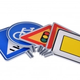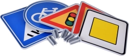 - 5 Figuren/Schilder (Ampel, Fußgängerüberweg, Vorfahrtstraße, Kreisverkehr, Radweg)
