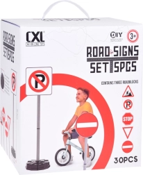 Dieses interaktive Set enthält 5 der beliebtesten Verkehrsschilder: Baustelle, Vorfahrt gewähren, STOP, Parkplatz und Einfahrt verboten. Der Aufbau ist einfach – jeder Ständer besteht aus Standfuß, Rohren und Verbindern. Die Standfüße können für maximale Stabilität mit Wasser oder Sand befüllt werden, selbst bei lebhaftem Spiel.