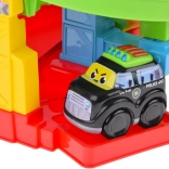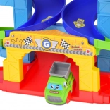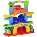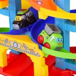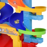 Spiralförmige Autorennbahn für Kinder mit Polizeiauto und Kipplaster, 19 Teile