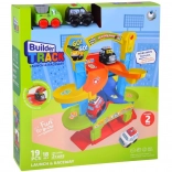 Spiralbahn, Starttor, Stützen, Aufkleber, 2 Autos (Polizei und Kipplaster)